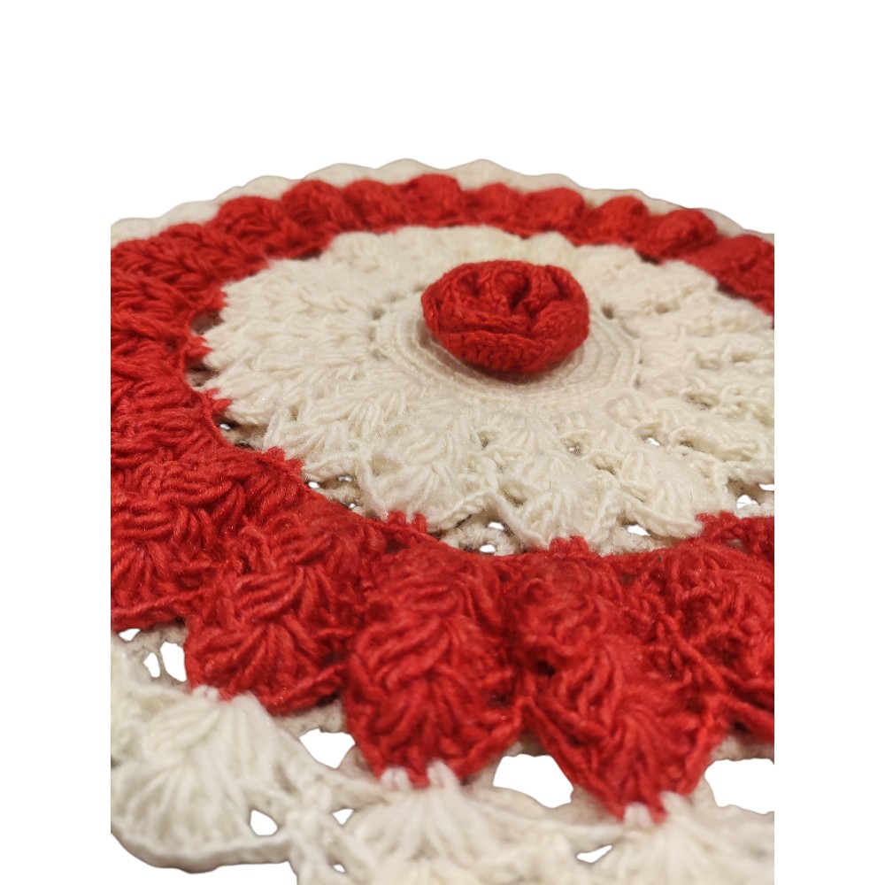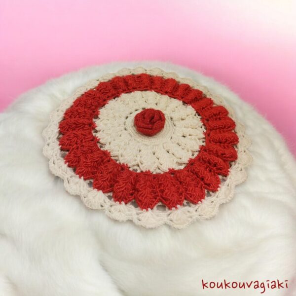 Χειροποίητη πλεκτή μαξιλαροθήκη σε σχήμα λουλουδιού.