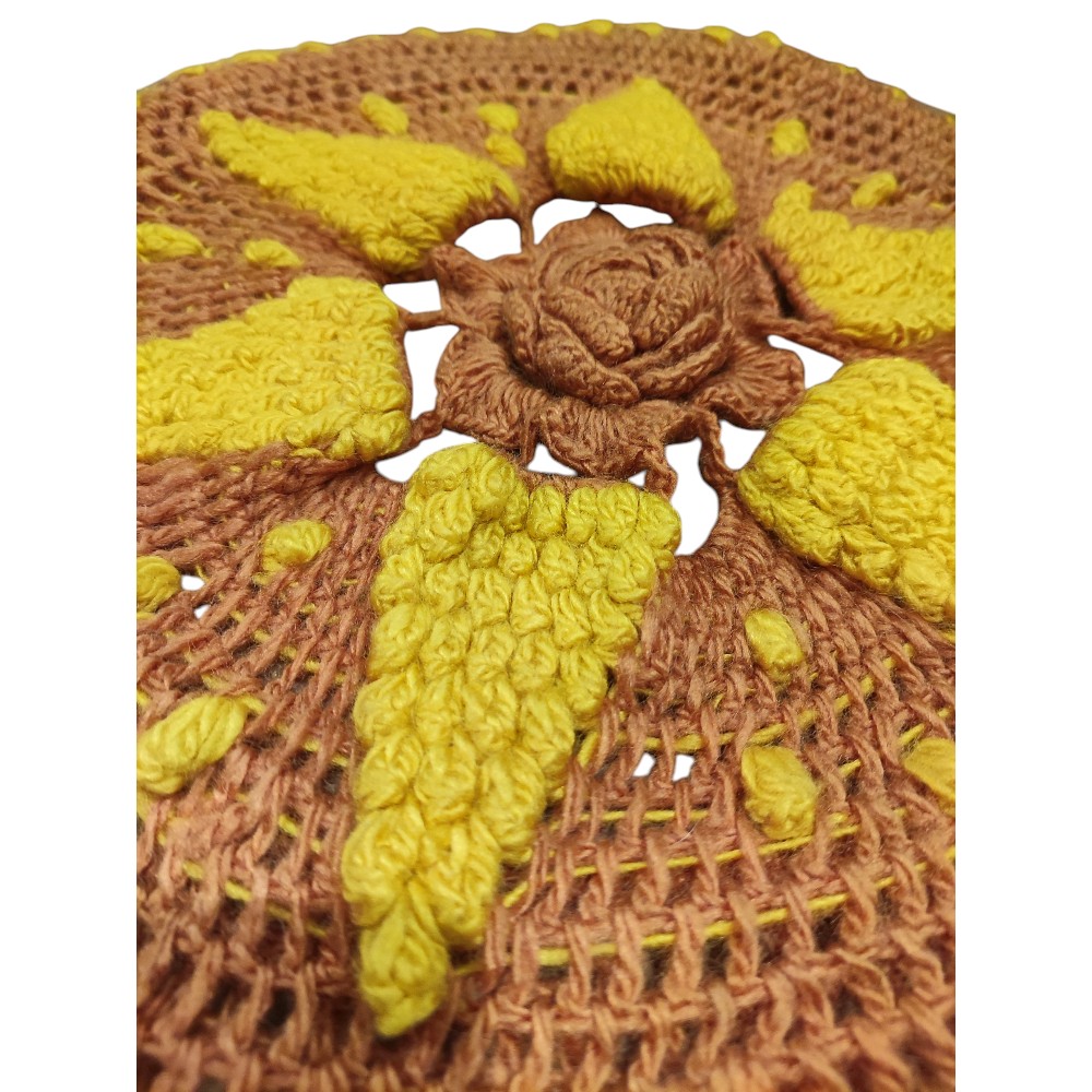 Χειροποίητη πλεκτή μαξιλαροθήκη σε σχήμα ήλιου.