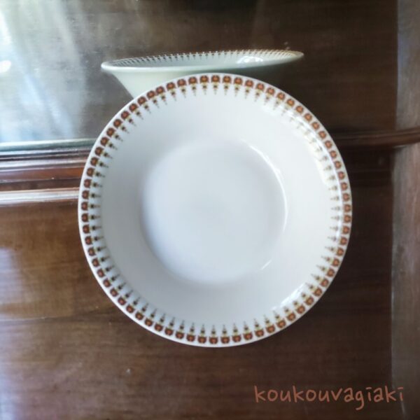 Σαλατιέρα με περιμετρική φυτική διακόσμηση σε καφέ χρώμα, από πορσελάνη ελληνικής προέλευσης.