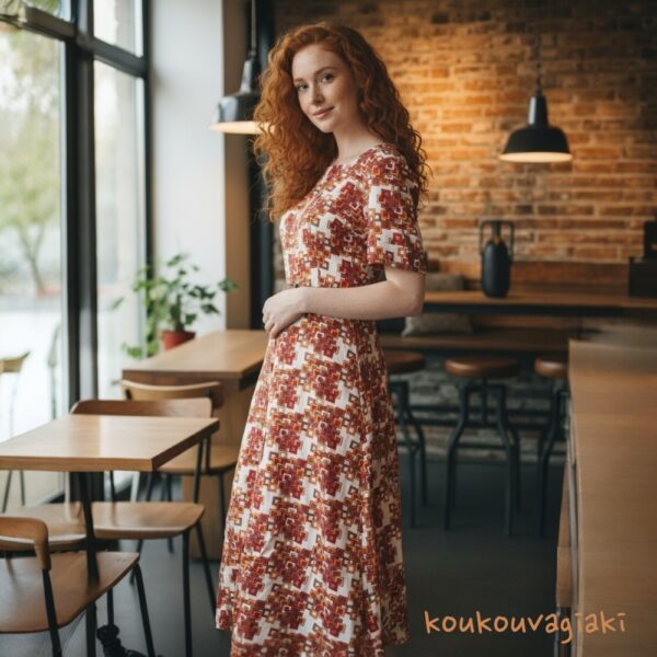 Vintage φόρεμα με ψυχεδελικούς κύκλους, δεκαετίας 1970-1975, σε πολύ καλή κατάσταση.
