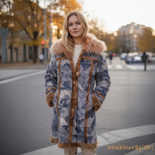 Vintage μπλε ημίπλατο με γούνα σε πολύ καλή κατάσταση. Το 20% θα δοθεί στον Φιλοζωικό Όμιλο Καλαμάτας. Size M/L.