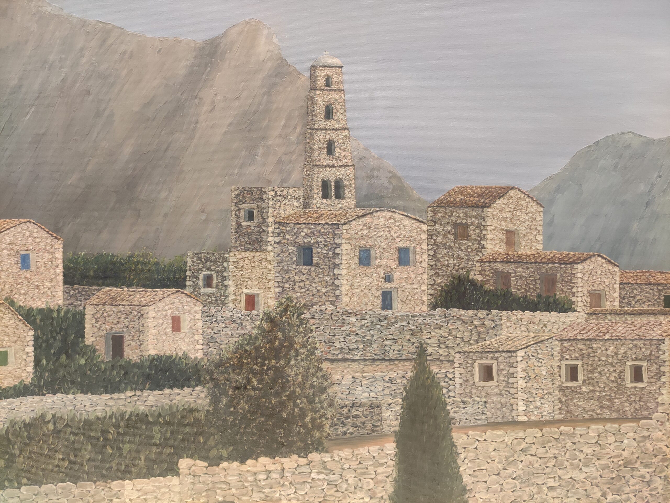 Φιλοτεχνήθηκε από τον ντόπιο καλλιτέχνη Π. Στρατάκο του οποίου φέρει την υπογραφή.
