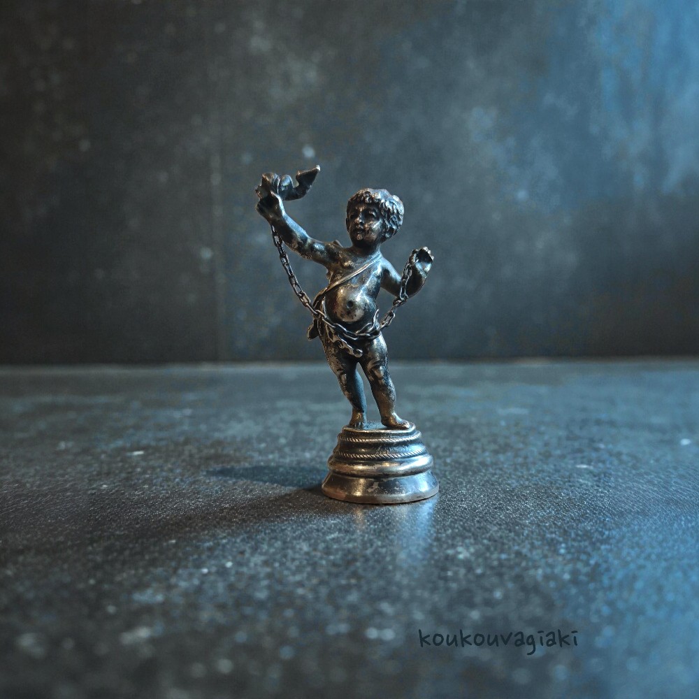 Silver minature god of love with wings, made of 800-grade silver.